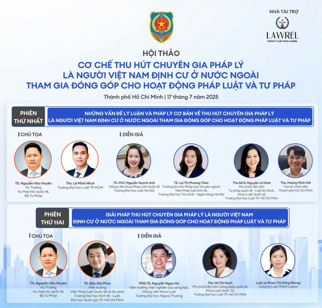 Tại TP. Hồ Chí Minh, ngày 17/7/2025 – Bộ Tư pháp đã tổ chức Hội thảo khoa học cấp Bộ với chủ đề “Cơ chế thu hút chuyên gia pháp